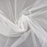 Für mehr Glitzer sorgt dieser zarte, mit vielen feinen Glitzer-Partikeln beflockte Tüll. Der feinmaschige ivory-farbene Tüll hat etwas Stand und ist mit sehr feinen silbernen Glitzer-Partikeln beflockt, die im Licht funkeln wie "Feenstaub". Der Glitzer-Tüll lässt sich sehr gut mit einer oder mehreren Lagen schlichten Tülls darüber kombinieren, um einen dezenten Funkel-Effekt zu erhalten.